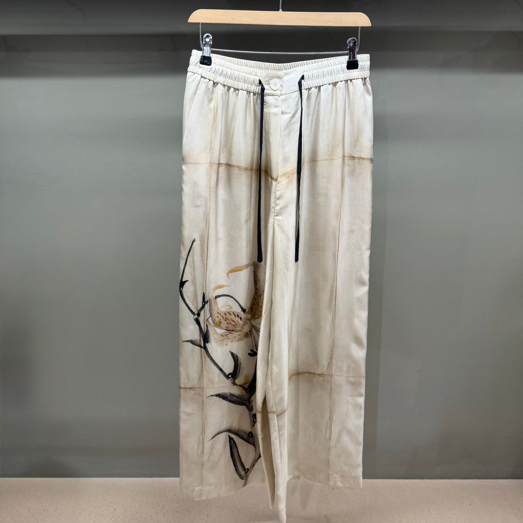 Pantalone aloe ampio a fantasia con vita elasticizzata.